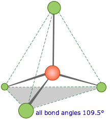 covalent bonds with itself, it forms a diamond structure. Each bond points to the corner of a regular