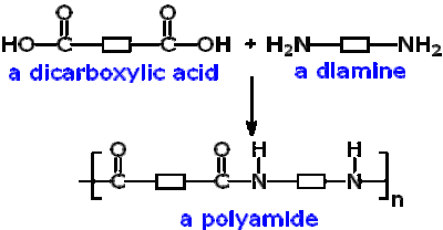 +    ClOC(CH2)4COCl    ➞    H[HN(CH2)6NHCO(CH2)4CO]nCl      +   HCl